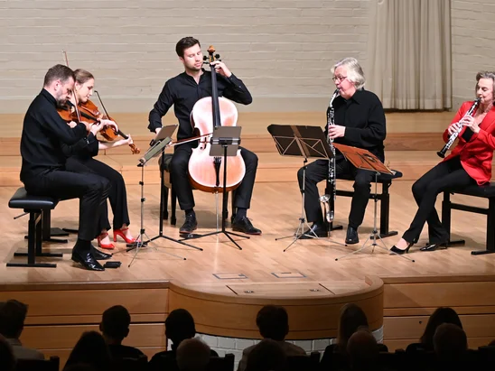 Die kamen dann besonders im „Stadler-Quartett“ zum Tragen, dem Mann gewidmet, der für Mozart die Instrumente erfand, baute und wohl auch bei den Aufführungen mitspielte, der also wusste, was alles er diesem neuen Klang zumuten konnte. Das weiß auch Sabine Meyer und hat es als Professorin bis 2022 in Lübeck auch weitergegeben: versiert in jeder technischen Hinsicht, bei der Auswahl ihrer Instrumente, immer noch mit einer Frische, mit der besonders solche bekannten Stücke wie eben das Stadler-Quintett schon immer von ihr gespielt wurden.