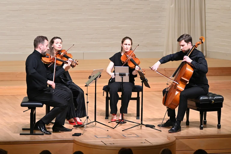 Von den „Konzertfreunden“ war zu erfahren, dass dieser Sabine-Meyer-Abend der erste war, der in der Saison 25/26 ausverkauft war. Und in einem Konzert nur mit Mozart hatte man Gelegenheit, über die Gründe nachzudenken, warum die Reihen so voll waren: Sabine Meyer spielte mit bei Mozarts Quintettsatz KV 580 b und bei dem wunderbaren Klarinettenquintett KV 581, ihre Partner waren Ehemann Reiner Wehle, wichtiger aber noch das Armida-Quartett, dessen Interpretation von Mozarts „Dissonanzenquartett“ KV 465 überdies das Publikum zu nachdenklicher Bewunderung veranlasste.