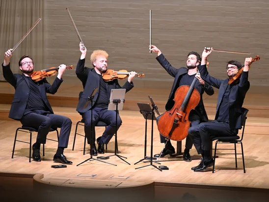 Es gab noch mehr: Das Quartett einer Autorin (brava!), nämlich der polnischen Komponistin und Schriftstellerin Grazyna Bacewicz (1909-1969), selbst eine hervorragende Geigerin. Ihr Quartett Nr. 4 komponierte sie 1951, sie blieb dabei auf Tuchfühlung mit tonaler Harmonik. Die Finessen ihrer Instrumentierung sind vom Feinsten, da komponierte jemand, der die Klangmöglichkeiten der Streicher aus dem FF kennt...
