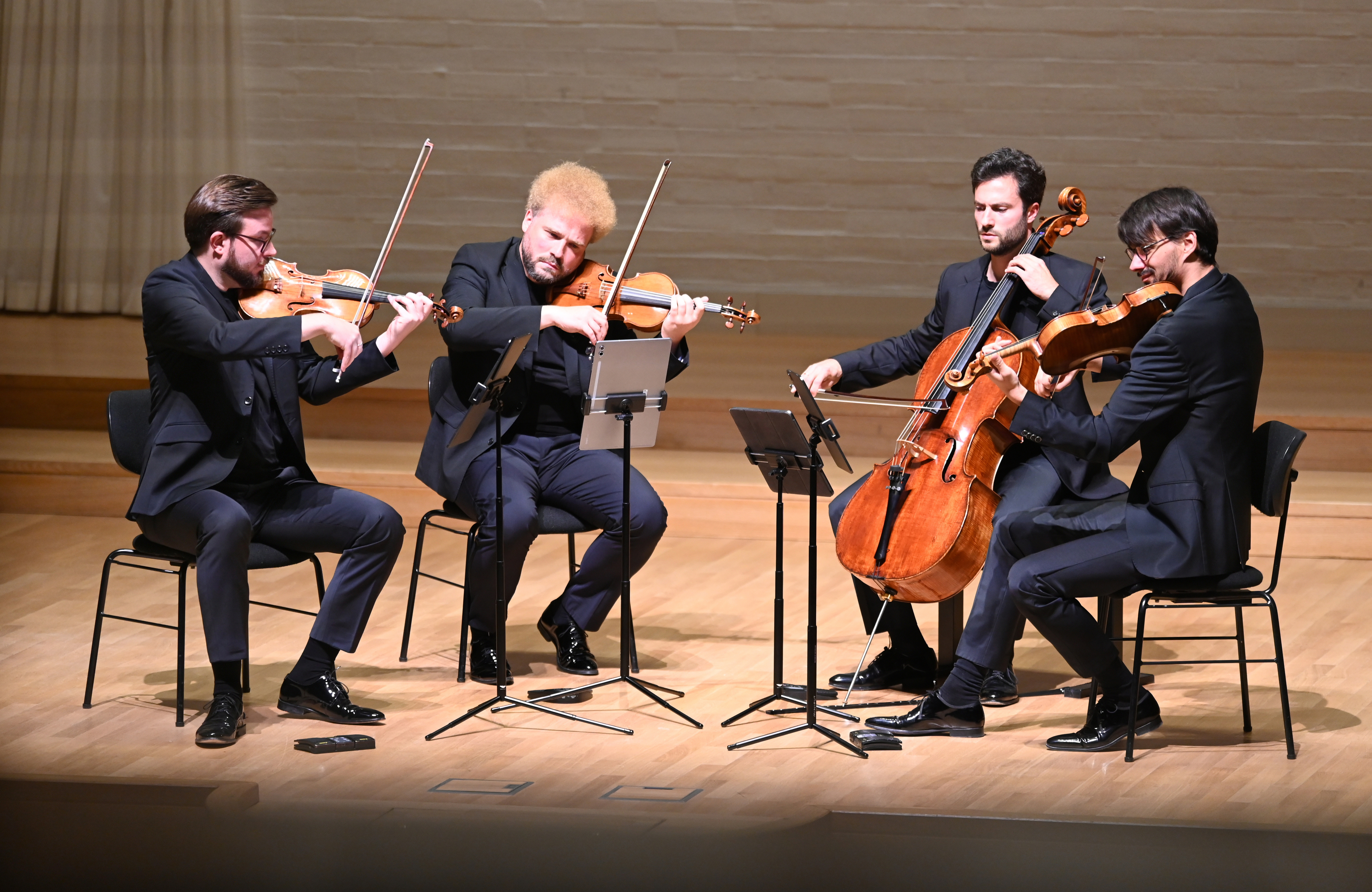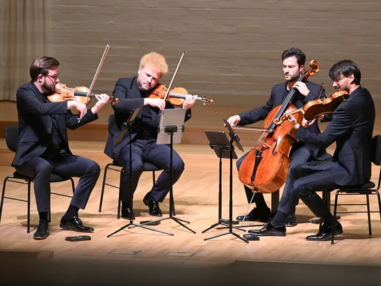 Vier Herren mit feuriger Karriere: Die vier Streicher vom Goldmund Quartett eröffneten die Konzertfreunde-Saison im Neumarkter Reitstadel.