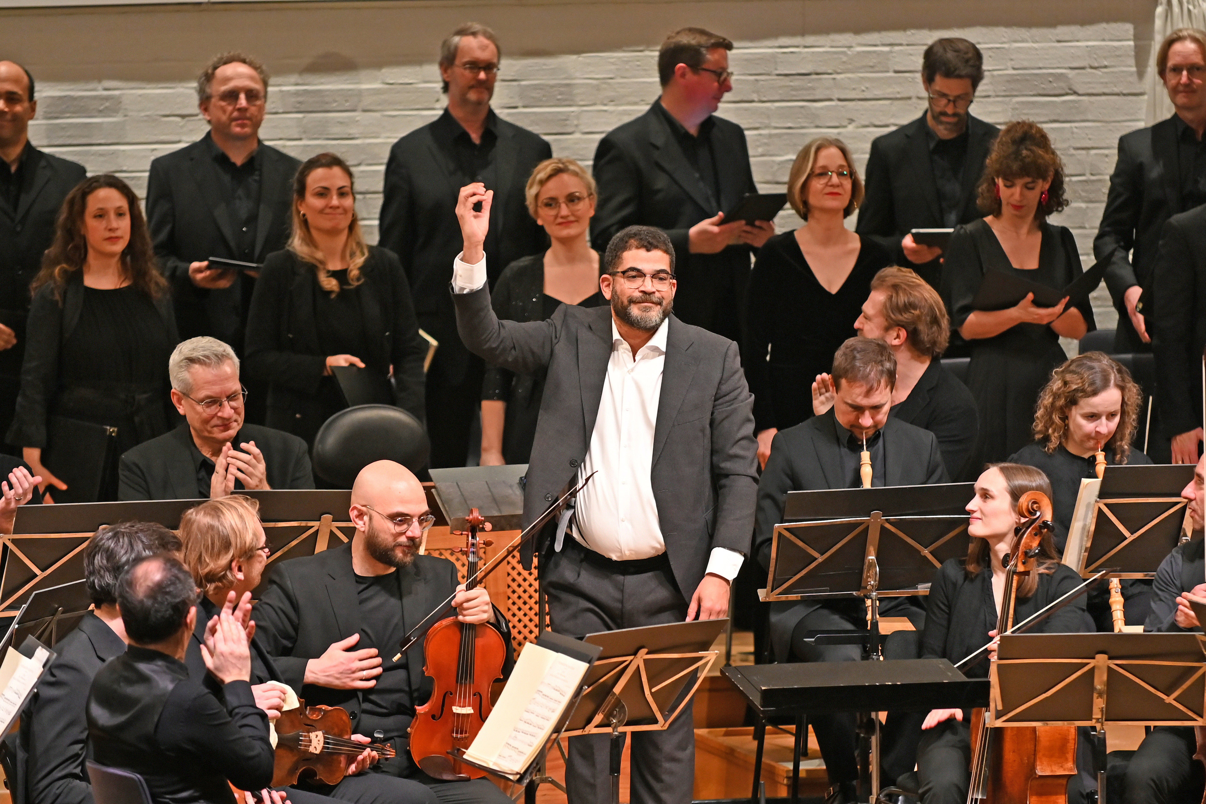 Und unterstützt durch eine völlig parallele Aktion von Lionel Sow: nichts, das da vokal und instrumental unerreichbar wäre an sicherer Aussprache, kraftvoller Betonung und in den Akzenten des Triumphs. Auch wenn das Ensemble nach der Pause die Kantaten V und VI anfängt und die Heilsgeschichte weitererzählt, investiert gerade der Chor viel Atem und inspirierte Präzision in den Eingangschor zu »Ehre, sei dir, Gott, gesungen«. Sow ist durchweg kein Interpret der breiten Striche, sondern gibt zuweilen einen geradezu vehementen, manchmal tänzerischen Duktus vor: mitreißend in Rezitativen und Arien, in solchen exquisiten Kombinationen wie von Oboe und Fagott.